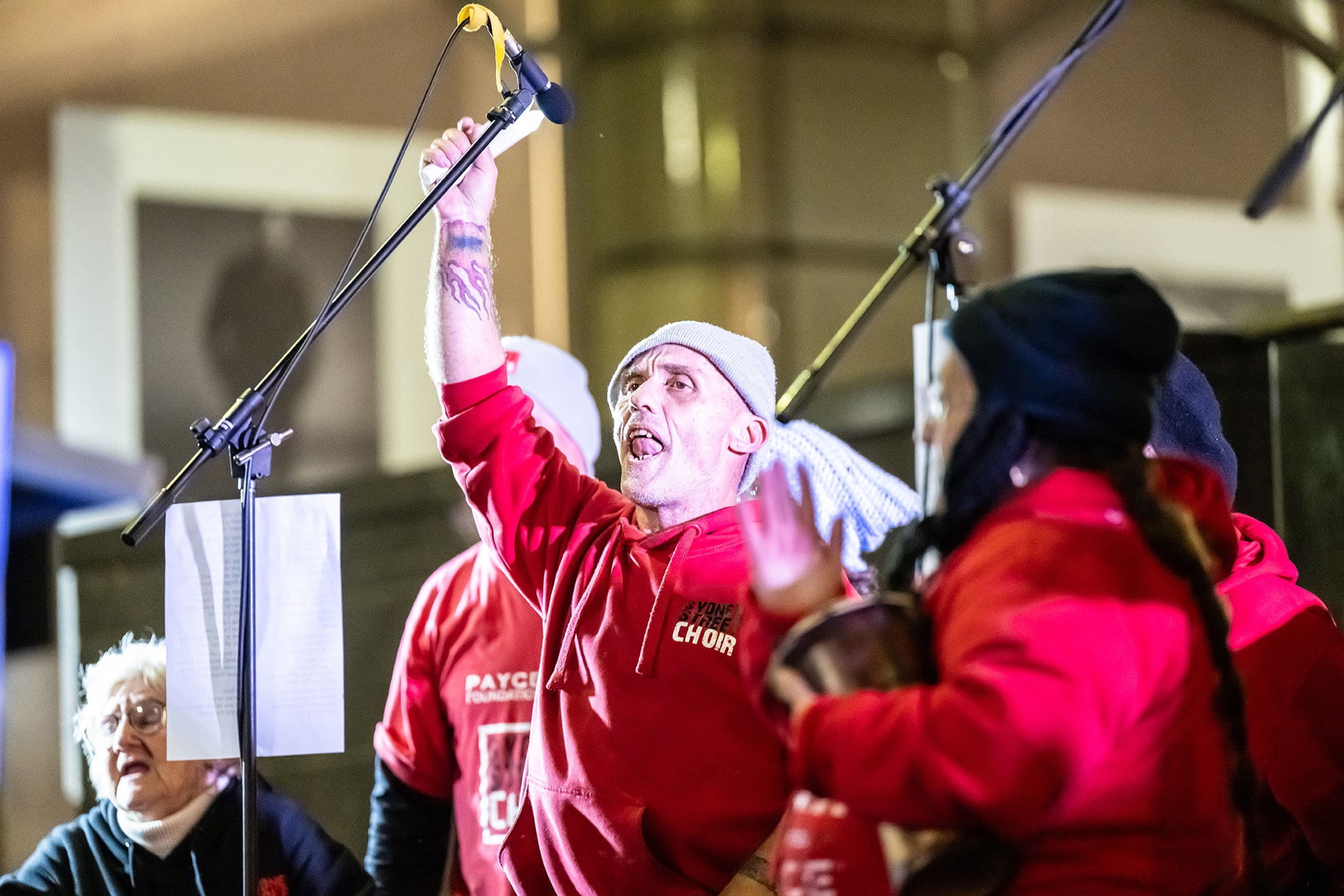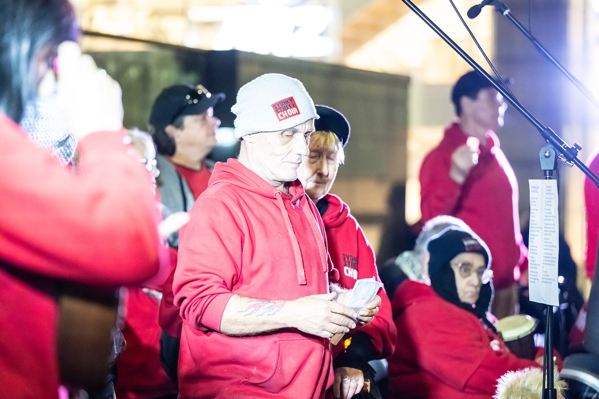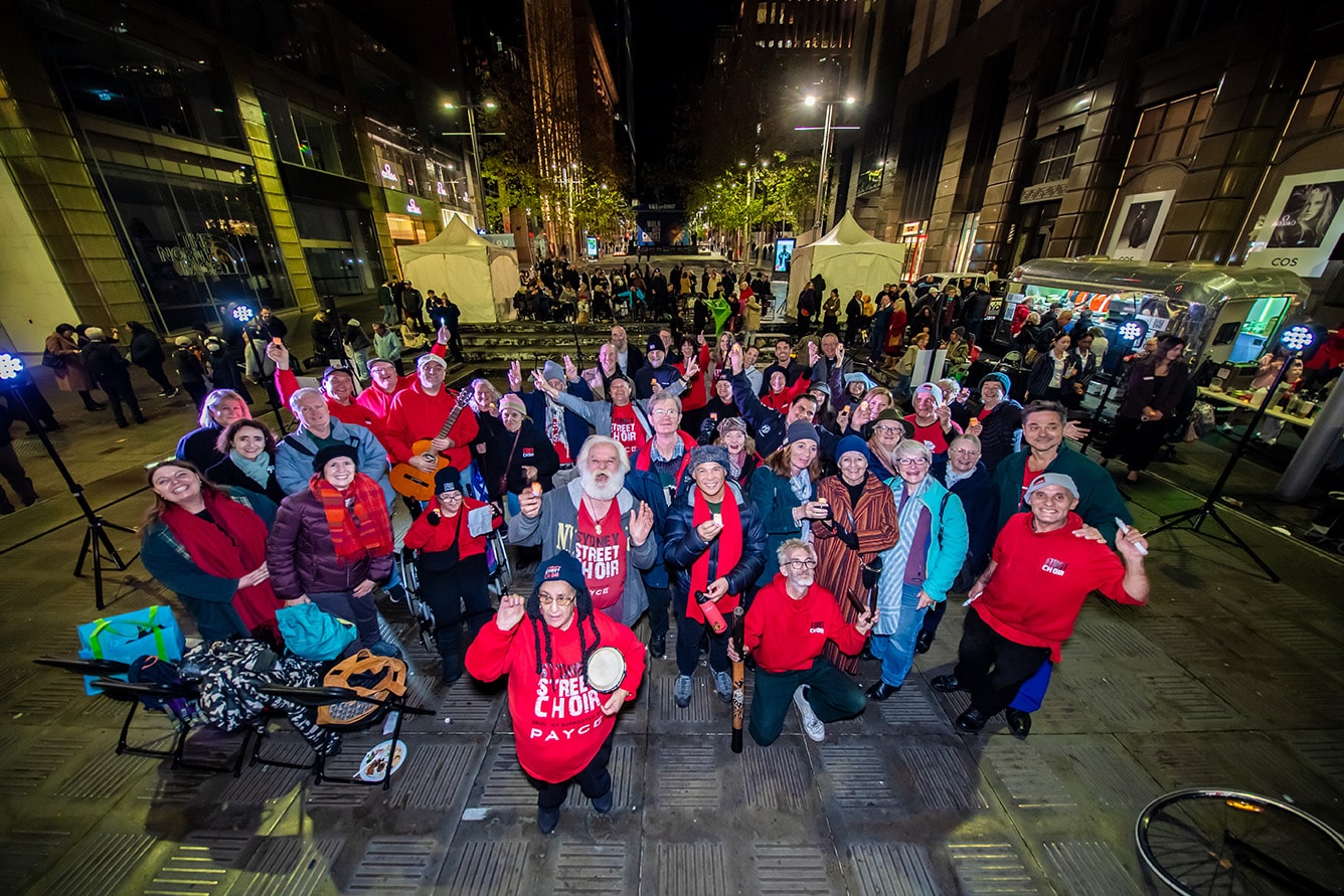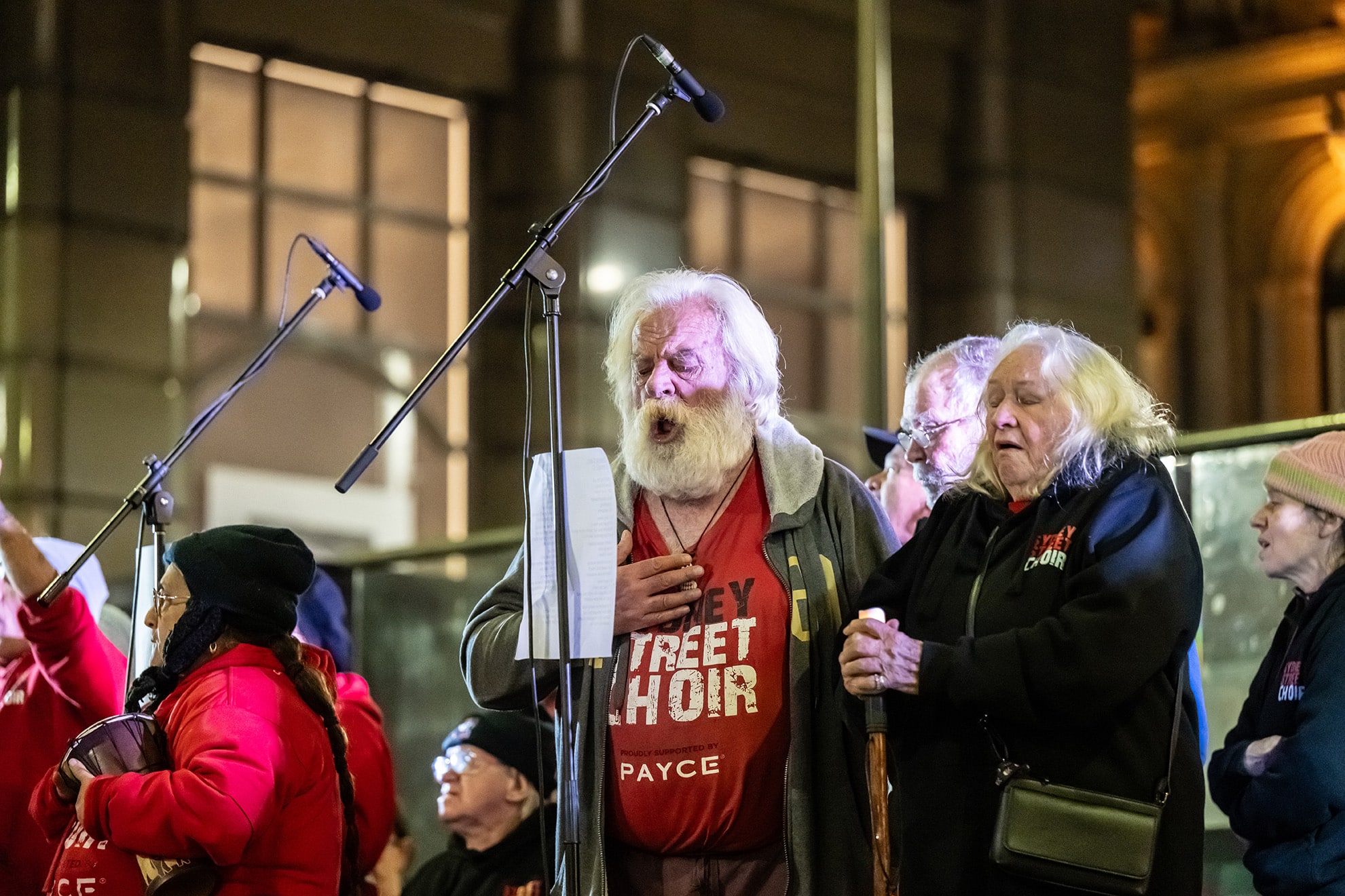 The Sydney Street Choir gave a stirring performance, their songs adding warmth and emotion to a night marked by cold weather but deep community spirit.