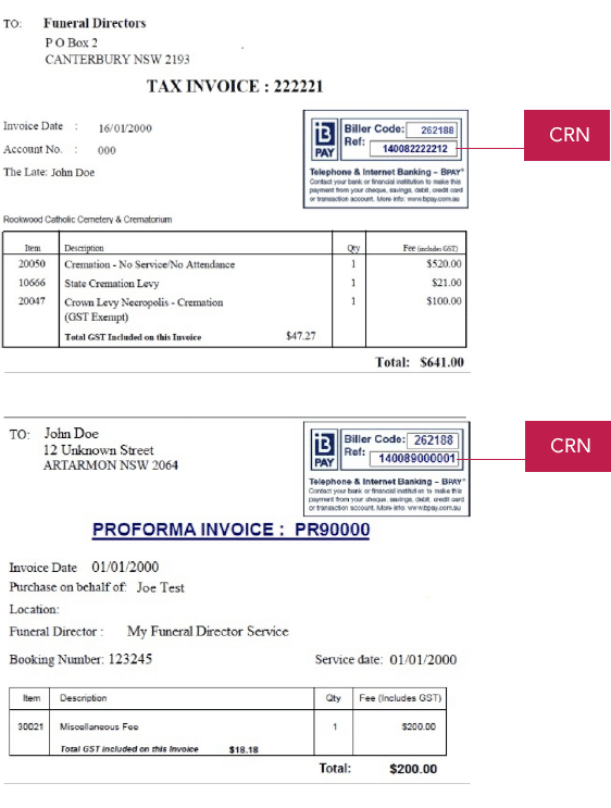 1. CRN as shown on Tax Invoice / Proforma Invoice (Please refer to examples below)